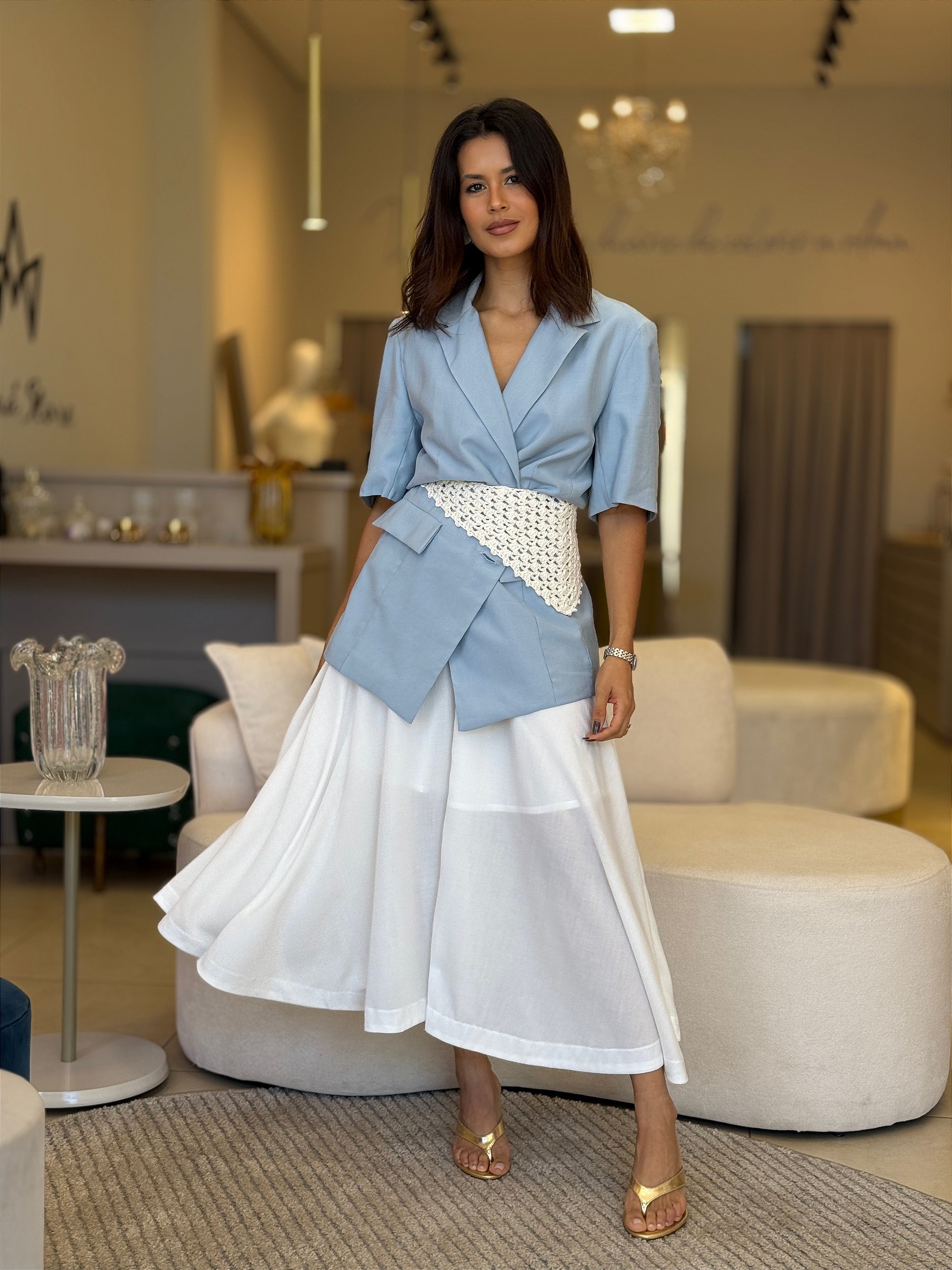 Com corte moderno e toque minimalista, o blazer Italo é perfeito para quem busca elegância sem esforço. Confeccionado em tecido leve e estruturado, apresenta mangas curtas e lapela clássica, conferindo versatilidade ao look. O fechamento por botões discretos e os bolsos frontais simulados adicionam charme sutil à peça. Ideal para combinar com shorts ou calças, ele eleva qualquer produção do dia a dia ou de ocasiões especiais.