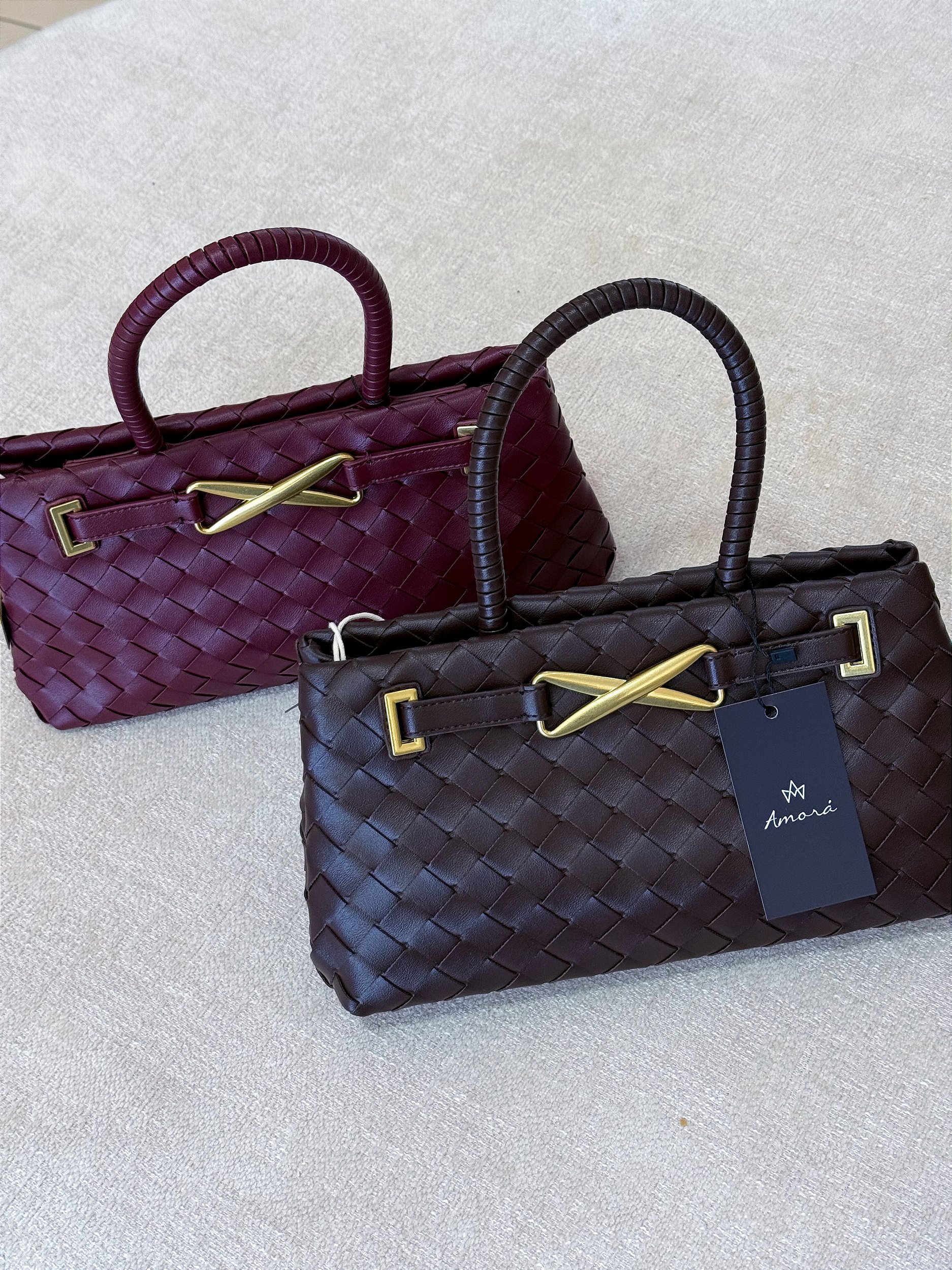Bolsa em PU com acabamento trançado, que traz textura e sofisticação ao visual. Possui alça de mão estruturada e também alça maior para uso de forma transversal. Além de fechamento em imã por fora e zíper por dentro, possui detalhe metálico dourado, que valoriza a peça e adiciona um toque elegante.