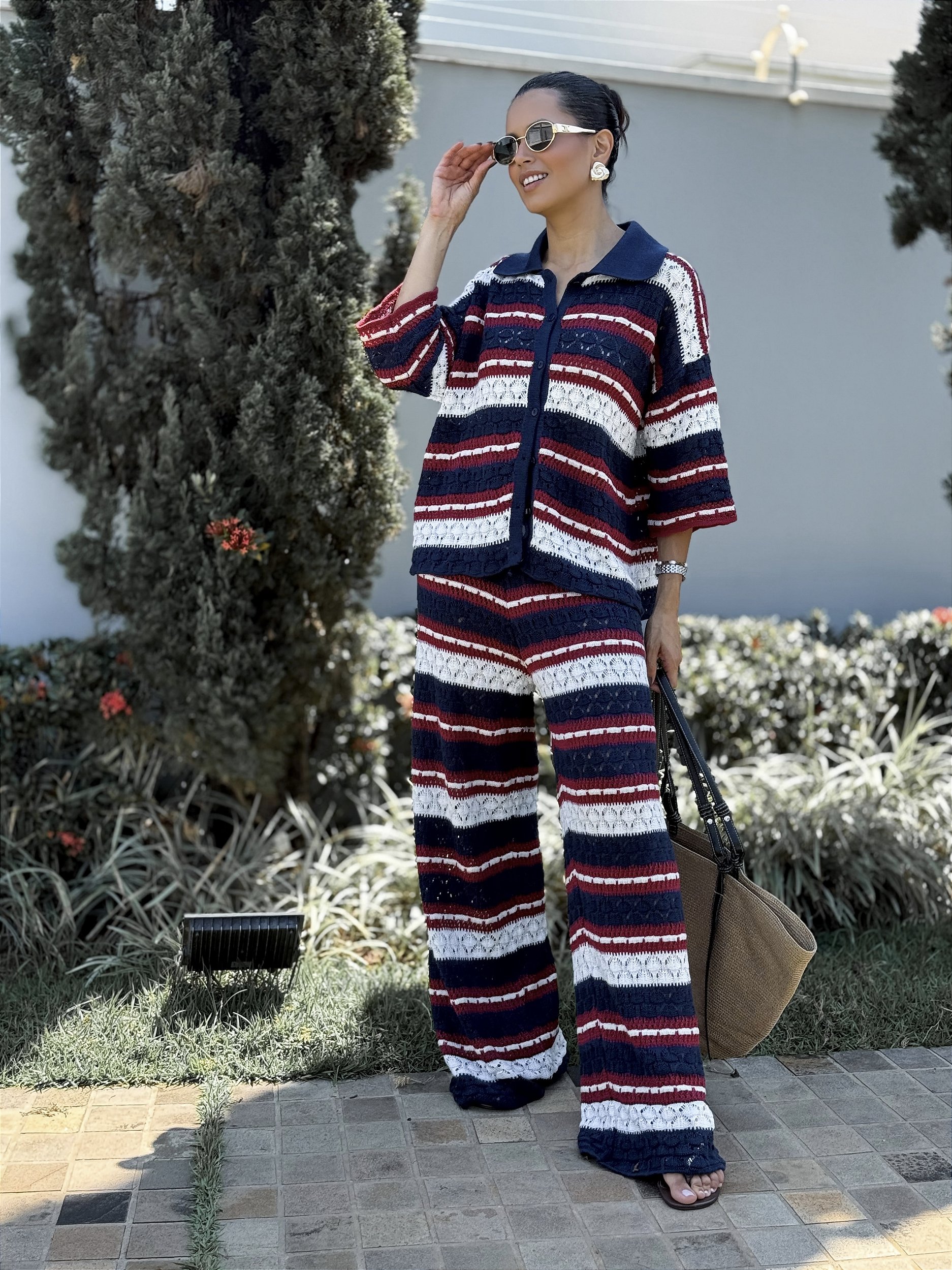 O conjunto em tricot listrado é a escolha perfeita para unir conforto e estilo. Com modelagem ampla e caimento impecável, a peça traz uma combinação moderna de cores e o charme das listras. O tricot leve e macio garante praticidade e elegância em qualquer ocasião.