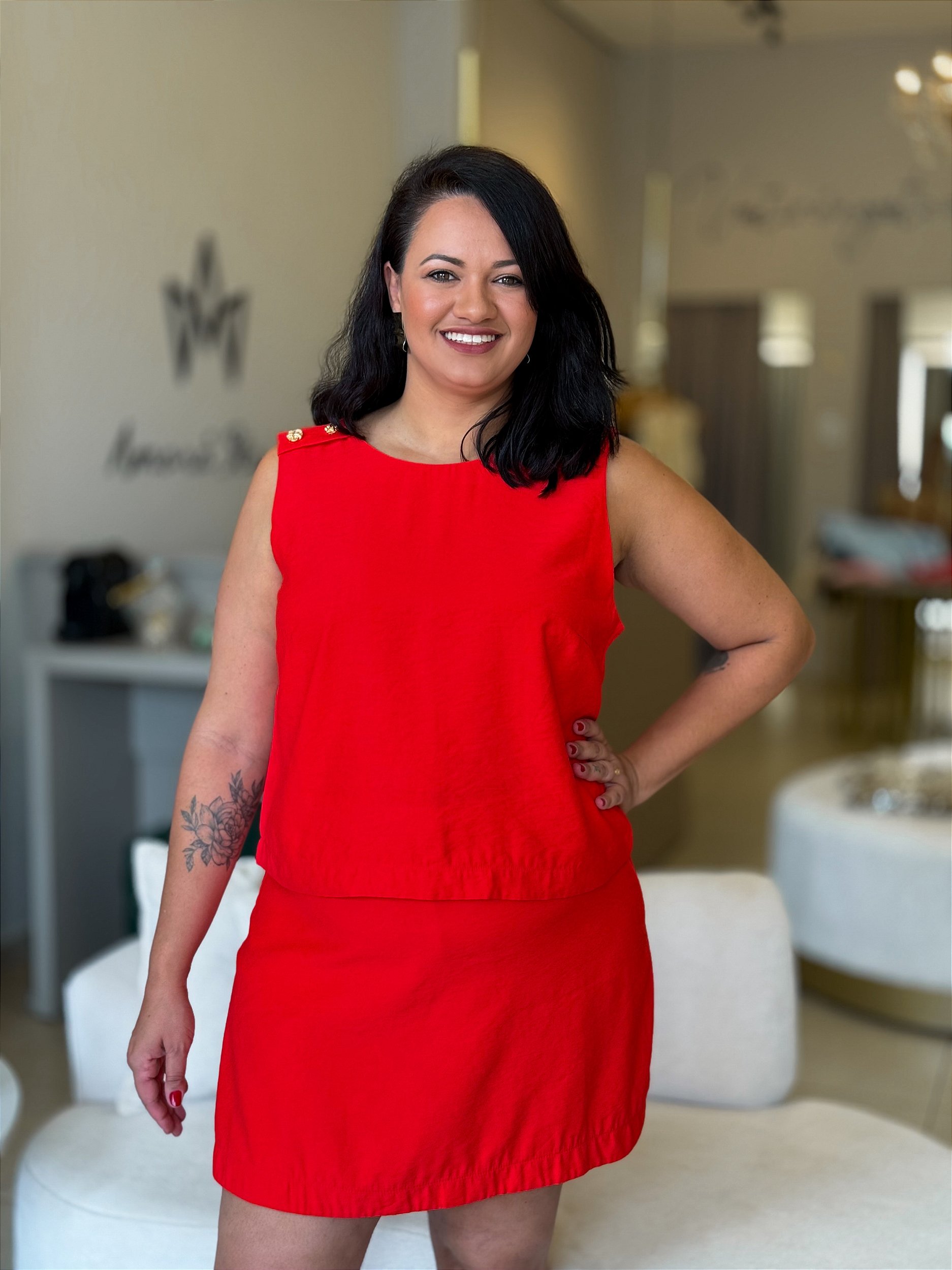 Regata Anastácia em viscose encorpada com gola redonda e faixa com metais dourados orgânicos. Sua modelagem alfaiataria proporciona um caimento perfeito ao corpo, sem marcar nadinha. Nossa Regata Anastácia é aquela peça sofisticada com um toque moderno devido aos metais nos ombros. Aposte para as festas de fim de ano mas também use sempre!
