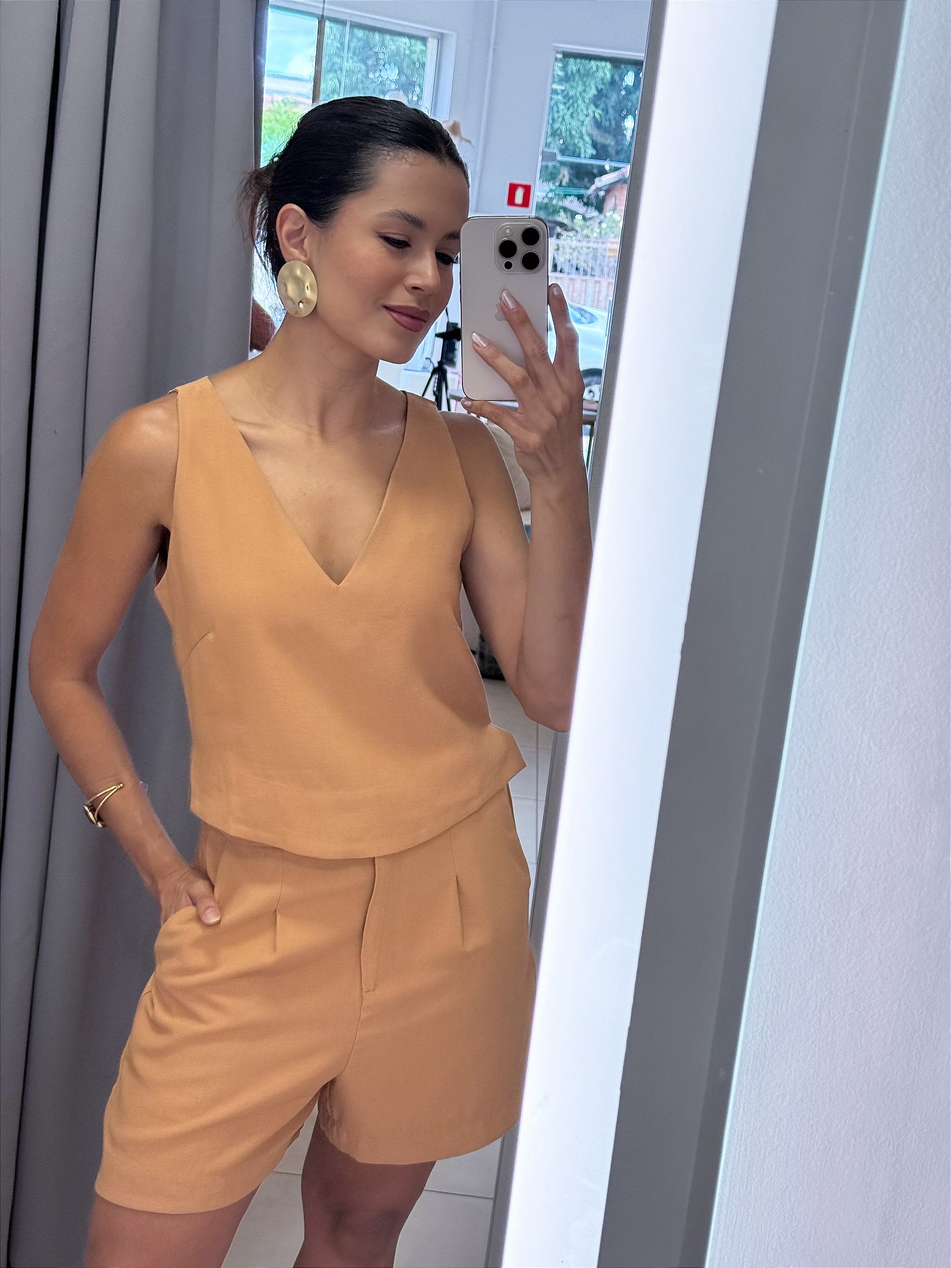 Blusa regata em modelagem clássica com decote em V. Em cor neutra e modelagem curinga, essa é aquela peça que você precisa ter no seu guarda-roupa. Perfeita para compor com alfaiataria, jeans, é aquela peça que transita desde looks formais até casuais. Para um conjunto fresco e sofisticado, utilize com nosso Short Murad.