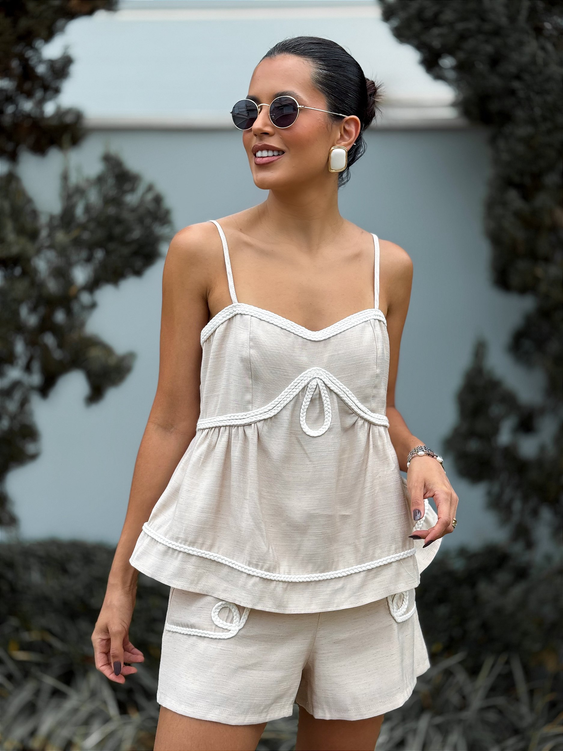 O short cordão é sinônimo de conforto e estilo. Confeccionado em algodão leve, possui modelagem soltinha e confortável. Os detalhes em cordão deixam o visual sofisticado e ao mesmo tempo natural, perfeito para produções de verão.