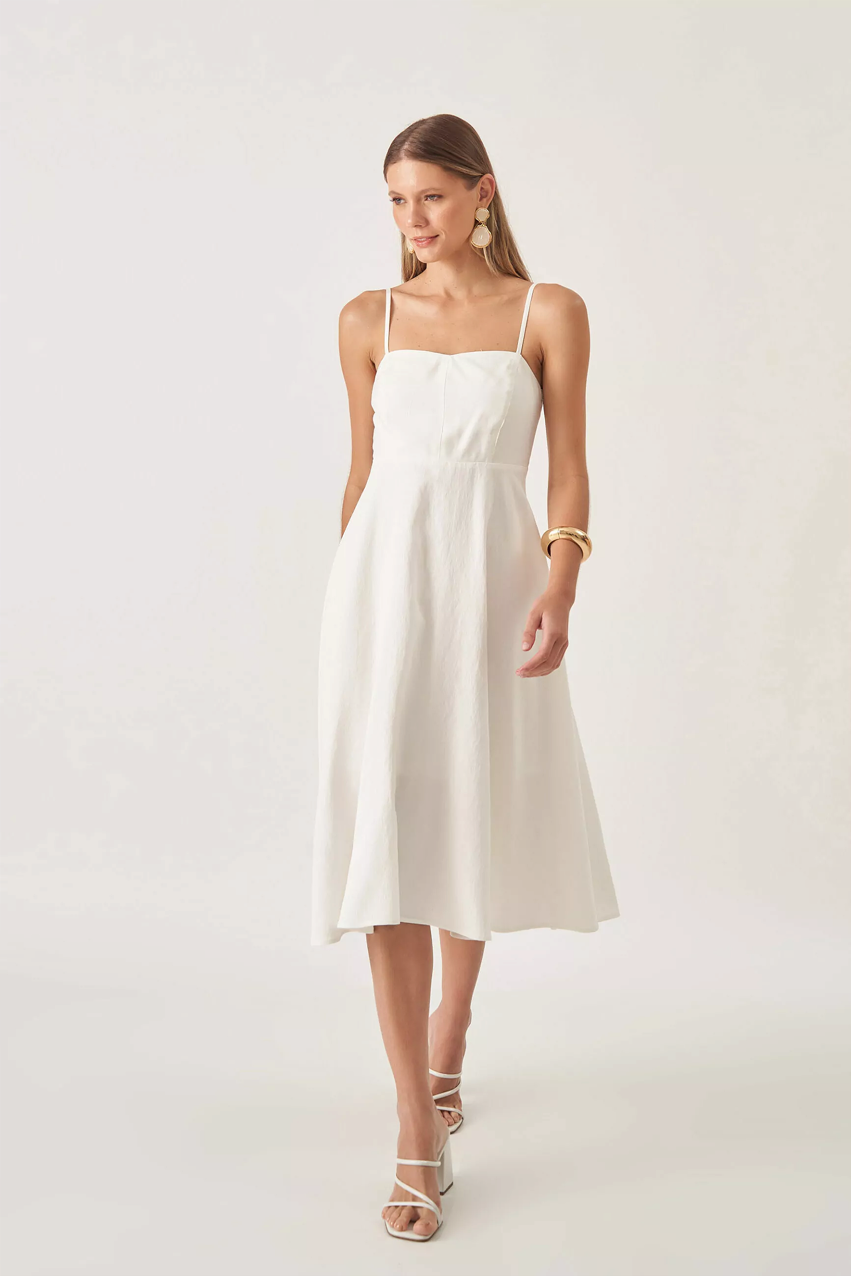 Um clássico que nunca saia de moda. O vestido midi Avila traz uma modelagem acinturada com saia solta, valorizando o corpo com leveza e sofisticação. O decote reto com alças finas traz um toque sutil de romantismo e o tecido de caimento leve garante frescor e elegância. Uma escolha perfeita para quem ama peças versáteis e cheias de charme.