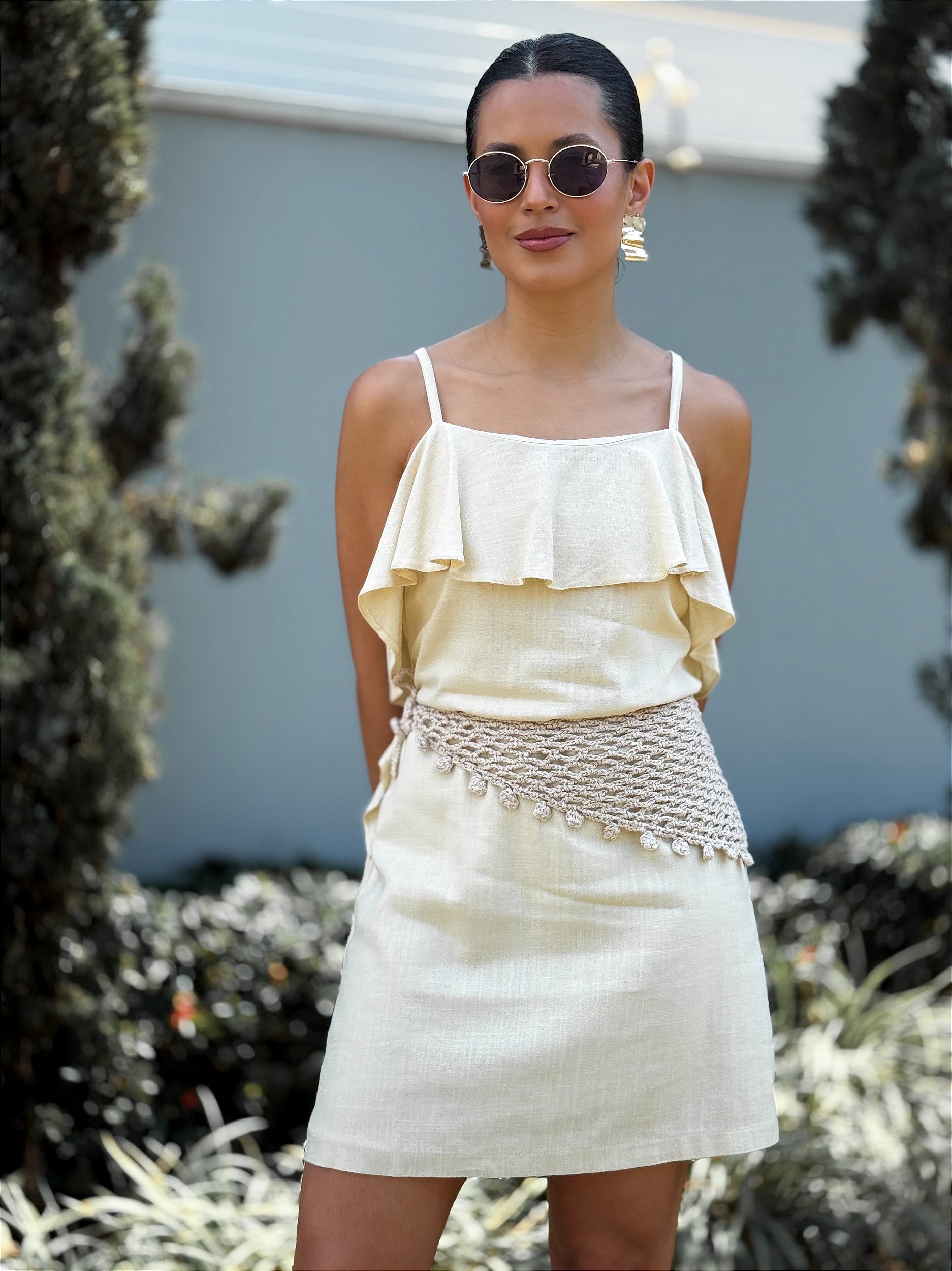 Vestido Babados Lola em viscolinho com alças finas, comprimento curto e babados e abertura com amarração nas costas. Seu detalhe em babados proporcionam movimento à peça, além de muita feminilidade e estilo. Com corte reto, é aquela peça soltinha e fresca que não marca nada ao corpo. Mas, apesar do seu corte reto, os detalhes em babados e abertura nas costas trazem modernidade ao vestido, o deixando nada óbvio. Aposte para ocasiões especiais com salto mas também com rasteira para o dia a dia.